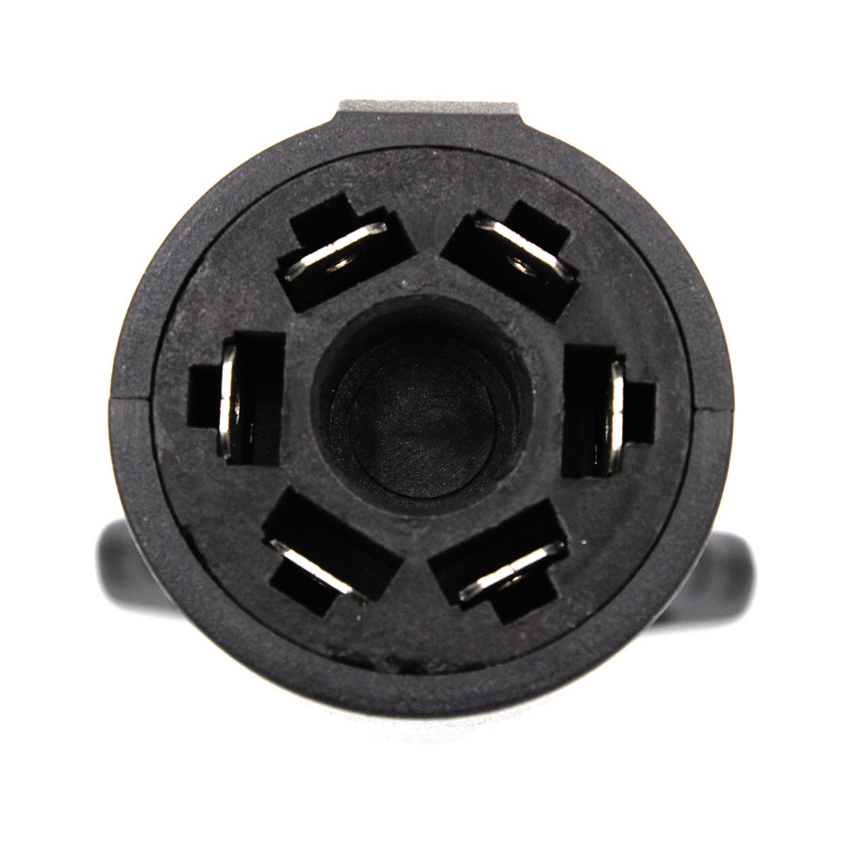 7 way blade to 6 pin trailer wiring adapter center pin brake converts a 7 way round pin vehicle connector to 6 way round connector ; It features an ergonomic molded design allowing for easy connection and a corrosion-resistant housing ;